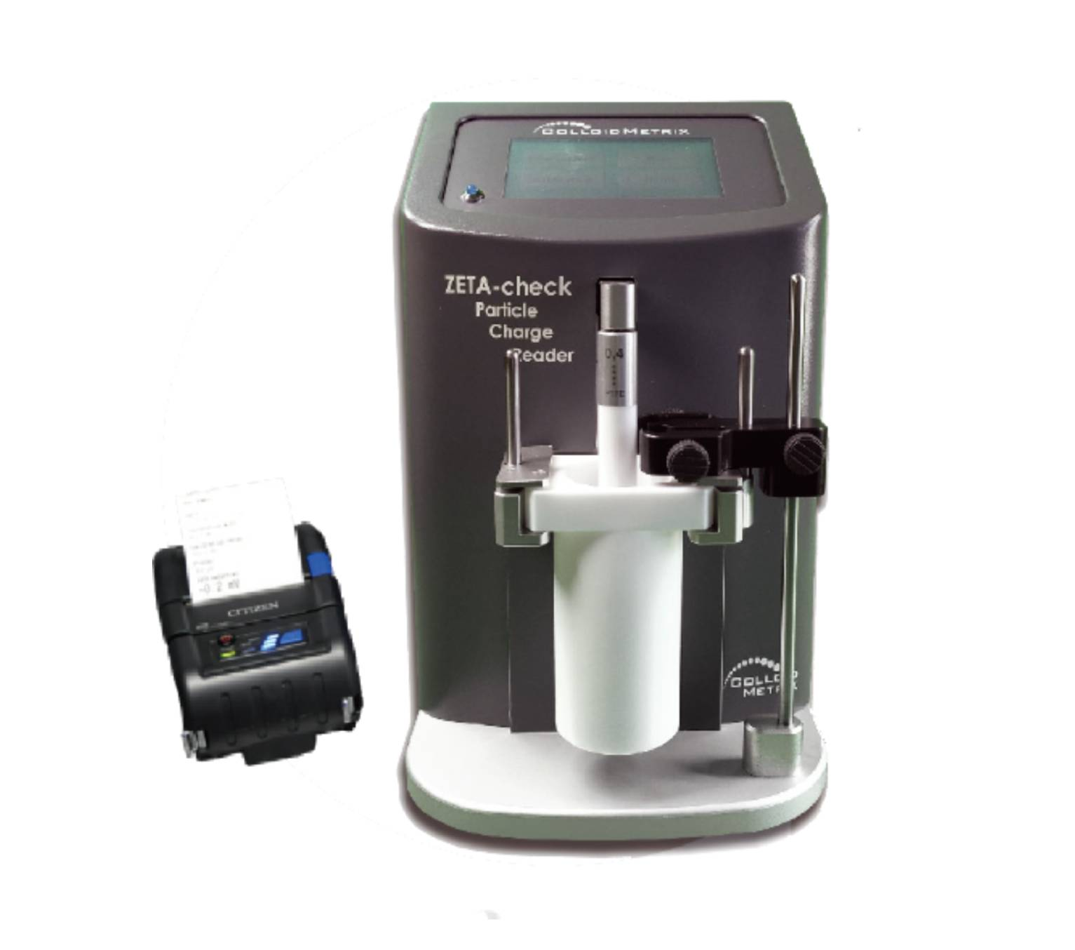 ZETA-CHECK的核心是一個圓柱形的PTFE腔體和一個振蕩活塞。通過在圓柱形腔體上下移動活塞,腔體和活塞間的液體會上下移動。由于被固體顆粒界面的剪切力,使顆粒的雙電層的離子云運動,顆粒的靜止是由大分子或者小顆粒吸附在腔體器壁上或者大顆粒的慣性形成。而在樣品底部的靜止區(qū),不存在這樣的離子位移。因此,在測量腔體底部和較高部之間的振蕩信號可以被測量。即流動電位(SP)。流動電位同顆粒的Zeta電位成正比關(guān)系。