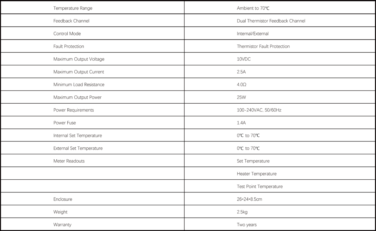 雙傳感器連續(xù)監(jiān)控實(shí)時(shí)溫度。嵌入式熱敏電阻和測(cè)試點(diǎn)傳感器可以通過(guò)獨(dú)立的反饋回路調(diào)節(jié)加熱器。TS-03點(diǎn)式測(cè)溫傳感器還可以簡(jiǎn)單地用作探針,以測(cè)量任何感興趣點(diǎn)的溫度。 測(cè)得的溫度將顯示在PCTC1001溫度控制器的前面板顯示屏上,或者也可以從通過(guò)后面板的EXT COM端口連接的其他設(shè)備上讀取。