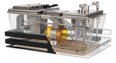 Pull-Mode Flow Generators (patent pending) for mouse or rat cages allow the use of essentially any standard live-in cage bottom for measurement. All you have to do is to replace the lid. No handling of the mouse, no unfamiliar new environment. This is a significant advancement over conventional systems, which use sealed metabolic cages – causing stress effects and requiring long acclimation times.