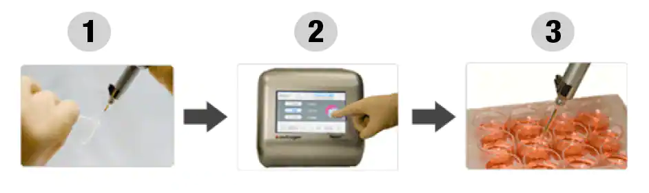 Neon轉(zhuǎn)染系統(tǒng)使用簡單的3步轉(zhuǎn)染程序。轉(zhuǎn)染過程發(fā)生在Neon移液器吸頭。