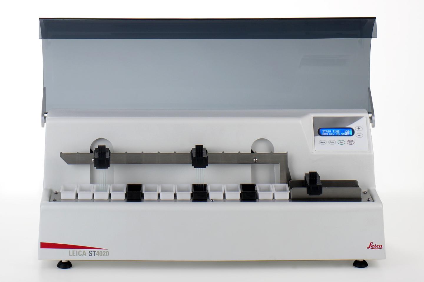 Leica ST4020 染色機(jī) 輕松地在術(shù)中進(jìn)行冷凍切片染色。緊湊型設(shè)計(jì):小至足以與您的冷凍切片機(jī)擺放在一起,可以迅速處理緊急的樣本。