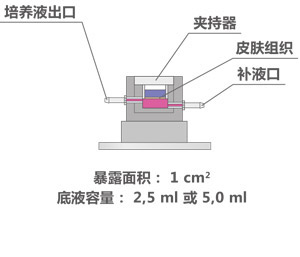 儀器底座與頂部由不銹鋼構(gòu)成。皮膚組織夾持 器經(jīng)過特殊設(shè)計(jì),防水防漏,并能穩(wěn)固地將皮膚固定在里面。該儀器比 FRANZ 擴(kuò)散池更實(shí)用, 更精確。