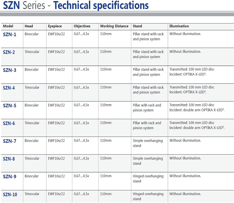 SZN系列的四種型號在需要專業(yè)儀器的任何地方都能找到適合的應用。 多種配件提供了充足的配置和應用選擇。