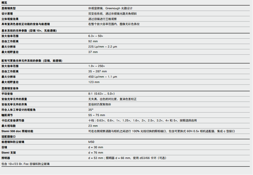 1.Stemi 508 擁有復(fù)消色差變倍光學(xué)元件與高度有效雜散光抑制功能,讓您能夠獲得清晰的三維圖像,無變形且無彩色條紋。