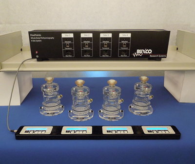 圖中是標(biāo)配4 chamber的FinePointe WBP系統(tǒng),控制主機(jī)中集成了霧化控制、偏流儀等以前獨(dú)立的系統(tǒng),比舊型號占地更省。同時提供一個可移動的控制手柄,方便用戶在儀器上直接控制各site的進(jìn)程。